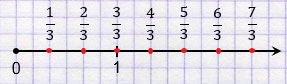 . Так как длина единичного отрезка равняется 6 клеткам, то трети будет соответствовать 6 : 3 = 2 клетки, поэтому отметим точку с координатой