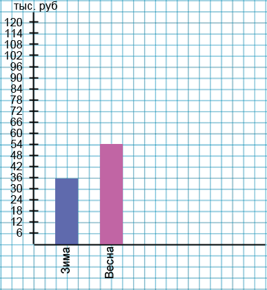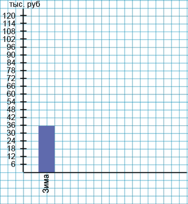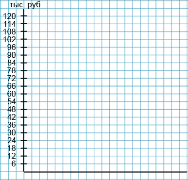 Выберем масштаб для вертикальной оси. В данном случае удобнее всего одну клетку принять за 6 тыс. рублей. Тогда мы можем подписать ось: