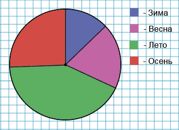 Чтобы построить круговую диаграмму, найдем годовой заработок тракториста, для этого сложим заработки всех сезонов: